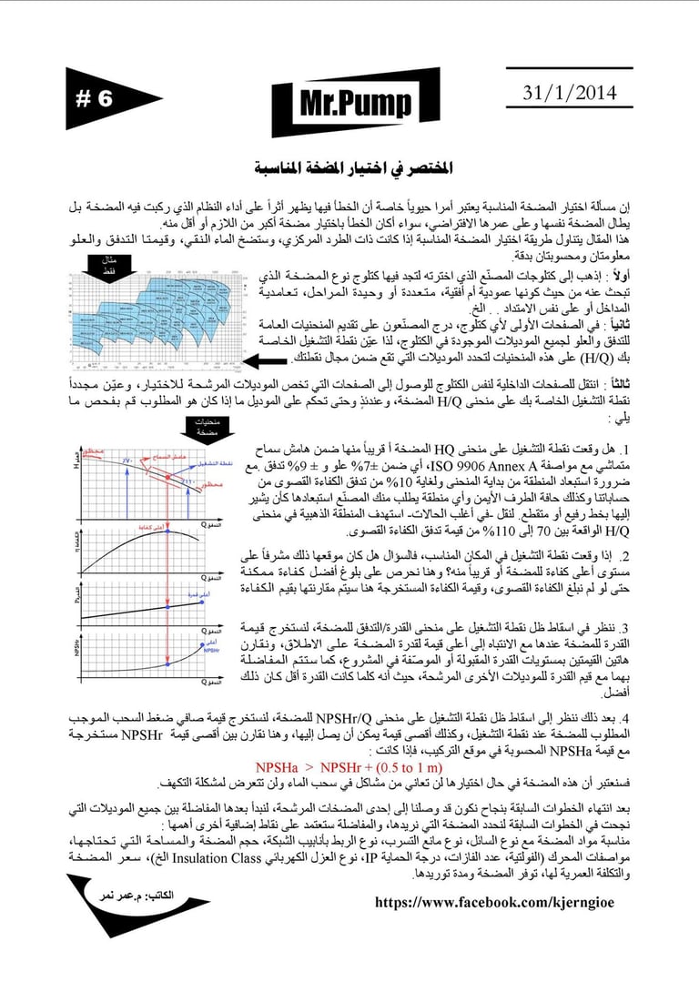 دليل سريع لتحديد حجم وقدرة المضخة المناسبة لنقط تشغيل معلومة مسبقاً